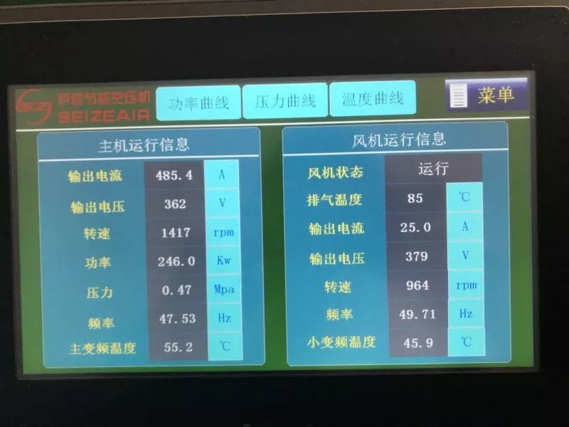 上圖屏幕中清晰的呈現(xiàn)了DCS流程圖,包括溫度,壓力,頻率,狀態(tài)等等,一目了然,薩震節(jié)能空壓機(jī)不但為該企業(yè)帶來節(jié)省電力的消耗,更重要的是對全球的環(huán)保事業(yè)做出了一份力量,既環(huán)保又節(jié)省成本,節(jié)能空壓機(jī)成為了消費(fèi)者心中的最佳選擇